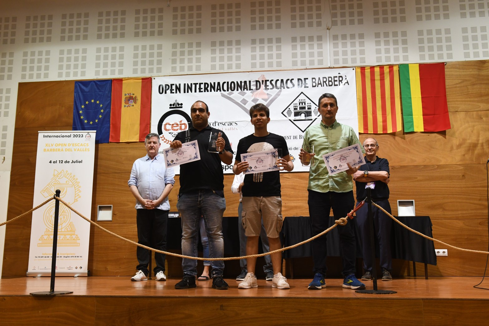 Cloenda del Open Internacional de Barberà 2023, del 4 al 12 de juliol; Torneig molt obert no s’han decidit les posicions capdavanteres, ´fins la darrera partida Campió el Perua Brian Escalante, Segon el jugador del Barberà Jaime Cuartas, tercer, el armeni Karen Grigoryan, quart el Jugador del Barbera Dani Alsina, en sis i mig tambéContinua llegint “El IM Brian Escalante de Perú guanya l’edició número 45 del Open Internacional de Barberà del Vallès”