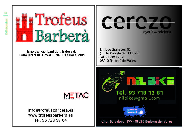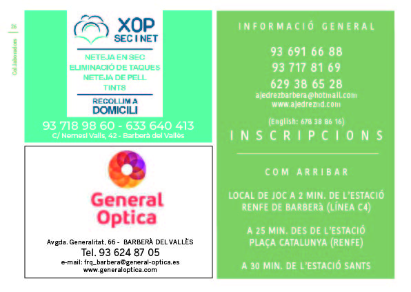 NOTA INFORMATIVA: el Club Escacs Barberà no cobrarà las quotes del mes de març, no cobrarem cap quota escolar fins que tornem a començar les classes, si algú voluntàriament volgués abonar la quota 18€, podrà fer-ho directament a la compta del club: BBVA ES04 0182 8674 4902 0010 8406