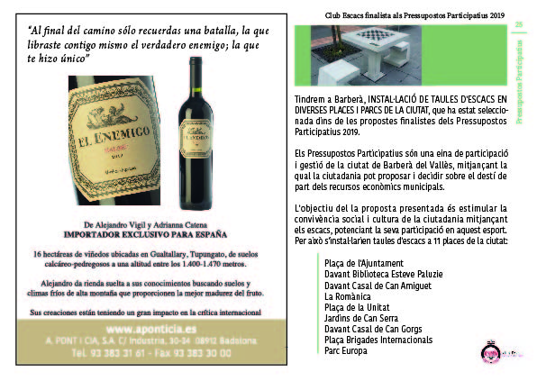 Reiniciarem les classes un cop la pandèmia acabi i les instal·lacions publiques tornin a obrir, las familias que per problemes econòmics no puguin abonar las classes, podran tramitar una beca.” Cap nen o nena o adult sense classes d’escacs per raons econòmiques”.